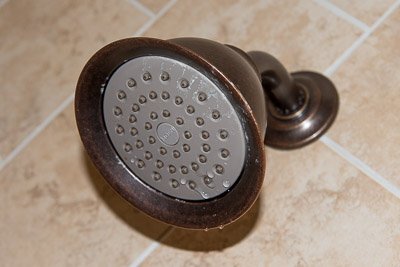 The water coming out of the shower was anemic. The house has great water pressure. What was the problem?