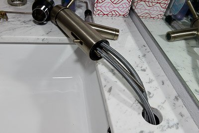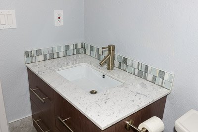 The existing mirror was too tall to allow for a 4" backsplash. I had to remove it, cut it down and reinstall it.